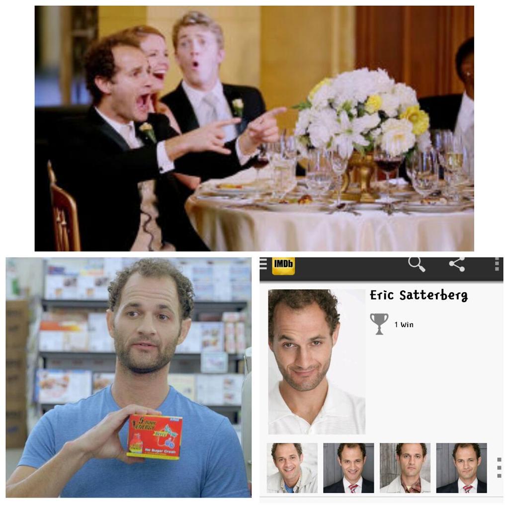 —A groomsman shown giving the “ohmigawd, it’s famous people!” finger point appears to be actor Eric Satterburg. Although I can’t say much about Satterburg or his acting credits (other than nailing this scene, I guess!), it is conceivable that he was simply a guest at a wedding that weekend. A very prominently-displayed, amazing-reaction-caught-at-the-most-convenient-moment guest.