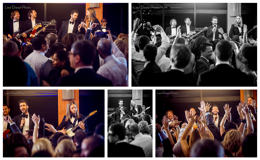 Liesl told me that the band did two takes of “Sugar,” then they asked that the dance floor be cleared of everyone except the bride and groom; the band then serenaded the newlyweds with an acoustic version of their song “She Will Be Loved” before congratulating the couple and leaving the reception. Oh, and what about those cameramen everywhere? “There were several cameramen at every angle,” Liesl recalled. “We all shot side by side with no problem.”